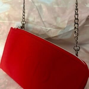 This elegant red designer clutch or make up pouch features the iconic “CD” logo, synonymous with Christian Dior, embossed on the front. Also added are pair of hardwares along with an unbranded chain strap to convert this into a crossbody or shoulder bag. Perfect for adding a pop of color to any outfit. This is new, never been used (no box). Note: This was a Gift With Purchase (GWP) item from Dior Beauty.