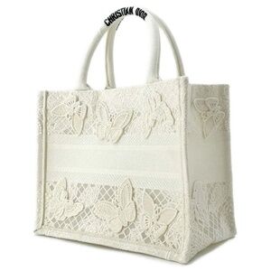 Dior Medium Book Tote 3D Macrame D-Lace Butterfly White