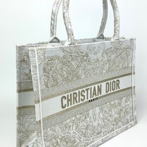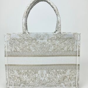 Elevate your collection with the Dior Medium Book Tote Around The World in Cream, featuring exquisite gold embroidery. This iconic tote blends timeless elegance with practical design, offering spaciousness for daily essentials while showcasing Dior’s craftsmanship. The refined cream canvas paired with intricate gold accents creates a sophisticated statement piece that transcends seasons, ideal for those appreciating luxury and artistry in their accessories.