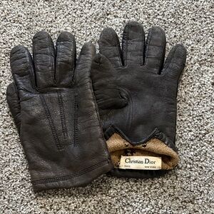 Sophisticated Dior gloves in rich dark brown leather. Perfect for adding a touch of luxury to your outfit.