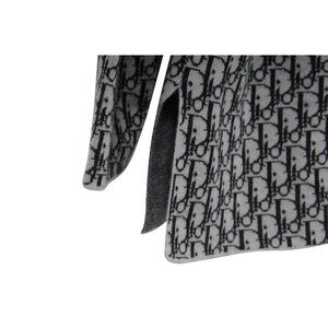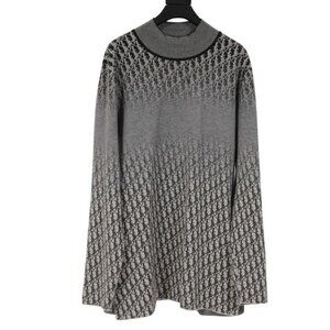 Dior Mens Oblique Logo Mock Neck Sweater Large Gray Black 100% Cashmere Pullover