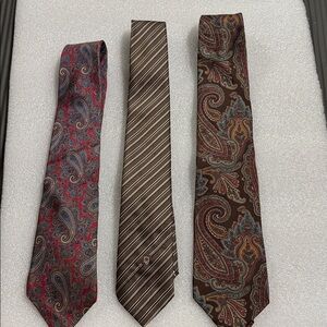 Discover elegance with Dior's exquisite tie collection. Features paisley and striped designs in rich red, brown, and gray hues. Perfect for formal occasions.