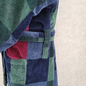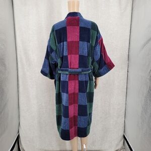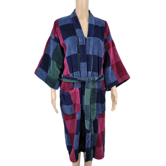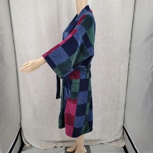Stylish Dior robe with a checkered pattern. Features a belt and two front pockets. Comfortable and elegant design.