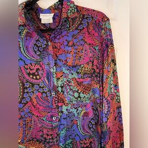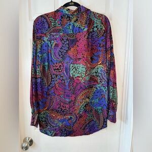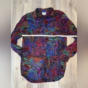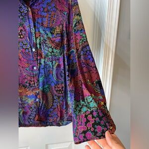 Elegant paisley design with vibrant colors. Features button-down front. Ideal for a stylish look.