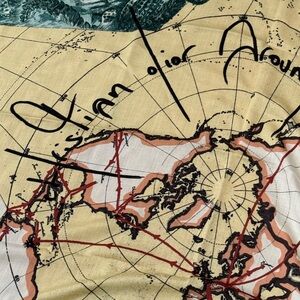 Dior NWT 140cm Around the World cashmere silk fringe globe shawl scarf wrap