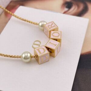 This necklace looks so elegant when worn! The striking gold tone paired with the unique dice and light pink design gives it a playful yet sophisticated vibe. It sits perfectly on the neck and is absolutely stunning in appearance.