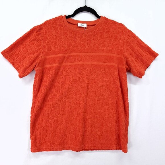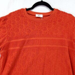 Dior Oblique Jacquard T-Shirt Womens Medium Orange Terry Crew Neck Cotton