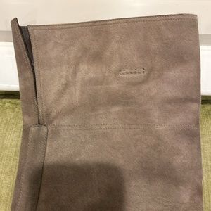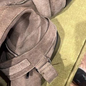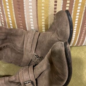 Well loved suede boots. Straps goes under bottom of boot. From heel to top of boot 24”