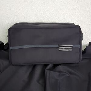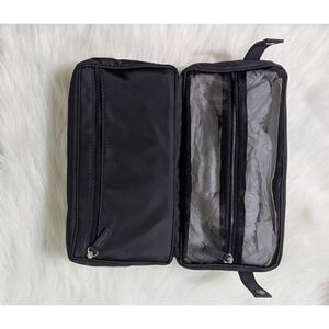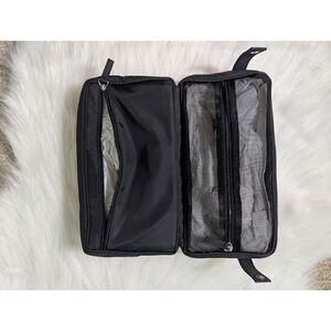 NWOT authentic Dior Parfums VIP unisex black nylon toiletry travel bag. Features snap closure on both sides, 2 inside zippered compartments one is mesh and the other is a closed pocket. Logo on front. Made of washable nylon.
