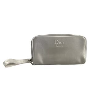 Dior Parfums Silver White Double Zip Toiletry Bag Trousse de Toilette Wristlet