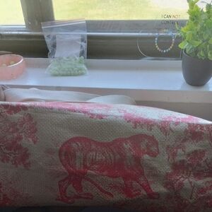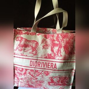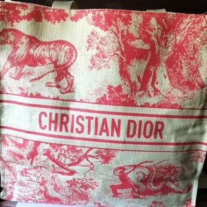 Elegant Dior tote with pink and cream design. Features iconic branding. Perfect for everyday use.