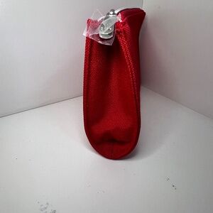 Dior Red Vibrant Fabric Flat Pouch with Embroidered CD logo and silver zipper closure, item is 100% Authentic, made exclusively for Dior Beauty Collection.