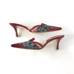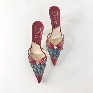 Vintage Dior Red Logo Pointed Toe Heeled Mules