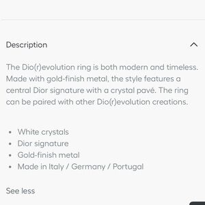 Elegant Dior gold ring adorned with sparkling crystals. Perfect for adding a touch of luxury to any outfit.
