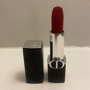 Dior Rouge lipstick in a sleek black packaging. Perfect for a bold look.