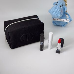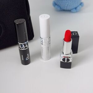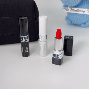 Dior Sample Set Diorshow Mascara Volume 4ml & Base Serum 4ml + Rouge Dior 999 Velvet 1.5g + Cosmetic Bag