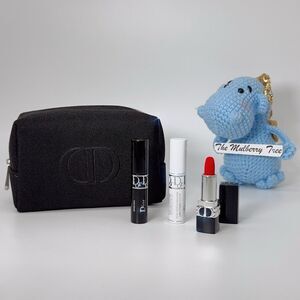 Discover iconic Dior beauty essentials in this exclusive mini set perfect for travel or trying Diors bestsellers! Includes mascara, base serum, and the classic Rouge Dior 999 Velvet lipstick, all tucked inside a chic Dior cosmetic bag with logo.
