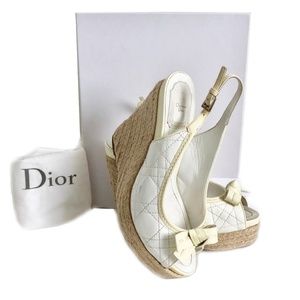 Dior shoes, Dior sandals, Dior espadrilles, designer heels, Dior platforms, Dior bow sandals, luxury summer shoes, Dior 38.5, white designer heels, patent leather espadrilles, Dior Cannage heels, French designer shoes, Dior high heels