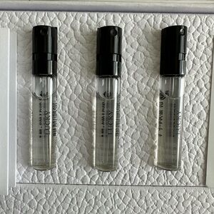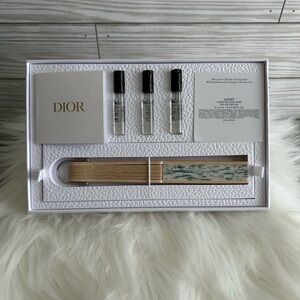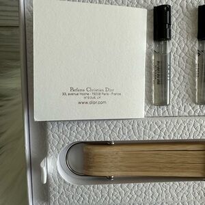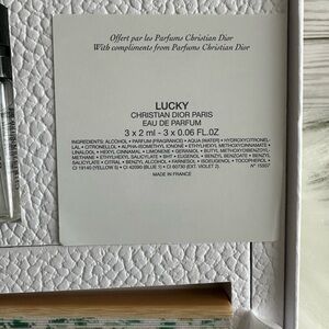 Elegant Dior set with 3 sample Lucky parfums, fan and rope chain for fan.