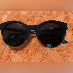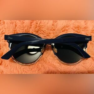 Experience the elegance of Dior with these blue aviator sunglasses, designed to offer a sleek and glossy finish. The classic double bridge and tinted lenses provide a timeless look, perfect for any occasion. Enhance your accessory collection with this sophisticated piece. Has small scratches on both lenses and on legs of item, please see pictures. Thank you.