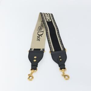 This is an authentic CHRISTIAN DIOR shoulder strap crafted of cotton canvas embroidered with the Christian Dior Paris signature and is further framed by black calfskin on either side. Two antique gold-finish metal snap hooks attach the strap to the bag of choice, the strap is 38" long and may be worn over the shoulder or crossbody. Retails for $1,250.