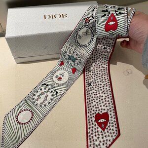 Crafted from high - quality silk, it's in excellent pre - loved condition with no flaws. Perfect for tying around your bag handle, wearing as a neck scarf, or using as a hair accessory to add a touch of Dior luxury to your look.