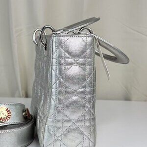 Dior Silver Leather Medium Lady Dior Shoulder Bag with Quilted Design
