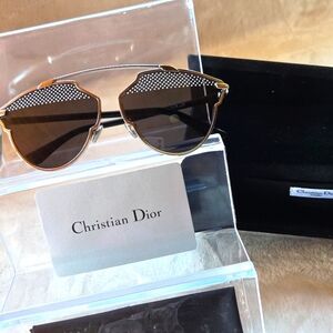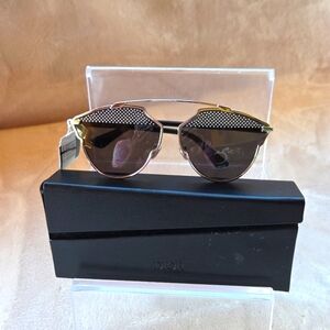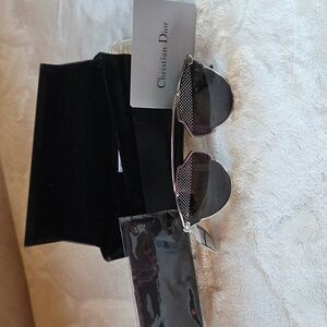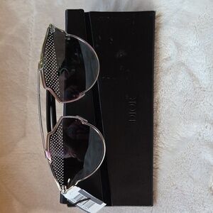 Stylish Dior So Real S studded sunglasses with a modern black and silver design. Frame is palladium silver with black lenses. Perfect for a chic look. Comes with case, duster and authenticity card.