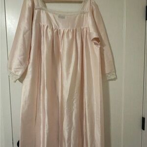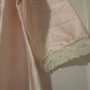 Luxurious satin robe by Dior. Soft pink hue with delicate lace trim. Perfect for relaxation.