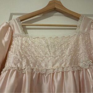 Pink nightgown with lace trim and floral embroidery #loungewear #coquette #fairycore