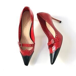 Dior Spectadior Red Brogue Cap Toe Buckle Maryjane Pumps 39