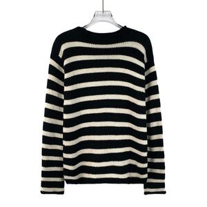 HW0398 Dior Colorblocked Stripe Side Button Cotton Crew Neck Long Sleeve Knit Sweater, Size 36, 99% NEW!