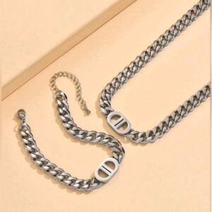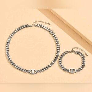 Stainless steel Dior style necklace and bracelet set. Brand new in box.