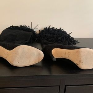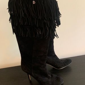 Dior suede boots with fringes and a row of silver studs around the top in great condition. Size is 38.5 and heel is 3.25”.