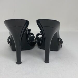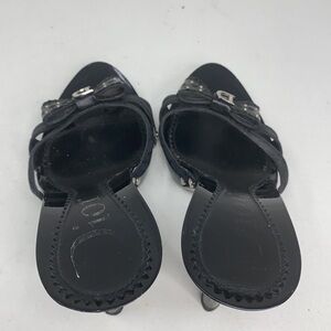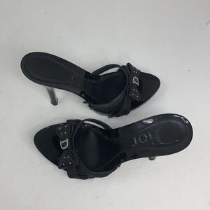 Dior Sz 37 Black Logo High Heel Sandals Bow Studs