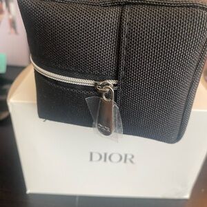 Chic Dior pouch in textured black. Ideal for makeup, accessories and toiletries. Box damage in storage. No damage to pouch.