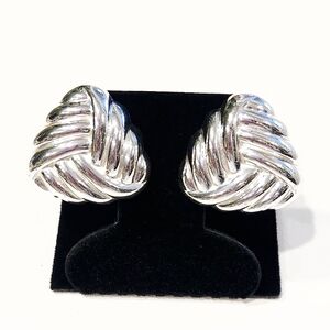 Dior Vintage Chunky Sterling Silver Clip On Earrings Signed Chr Dior Germany 925