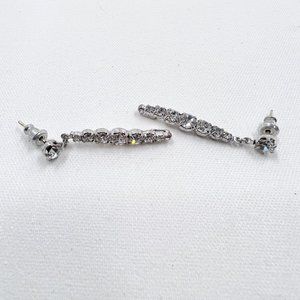 Dior - Vintage Costume Silver Tone Graduated Clear Crystal Drop Post Earrings