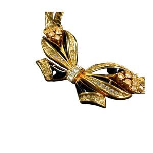 Dior Vintage Gold-Tone Bow Necklace 15 Inch
