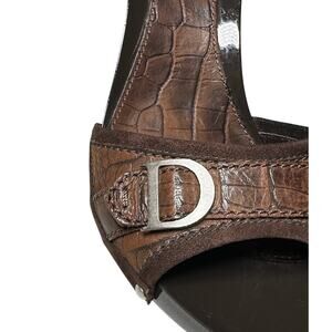Dior Vintage John Galliano Croc Embossed Logo Mules Slides Heels Sandals 40 NEW