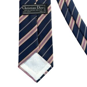 Elegant Brooks Brothers tie. Features navy, pink, and white stripes. Perfect for formal occasions.