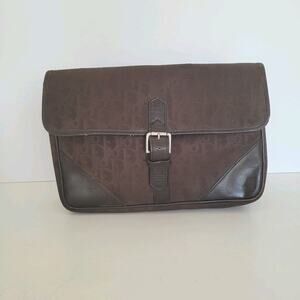 Dior Vintage Trotter Clutch Bag Pouch Flap Brown Signature Medium 11x8 Fair