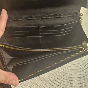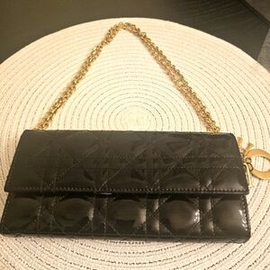 This stylish black quilted bag features a chic gold chain strap, perfect for any occasion. Its sleek design adds a touch of elegance to your outfit.
