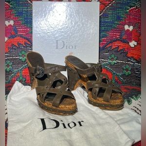 Dior Western Wedge 37.5 7.5 EUC chèvre