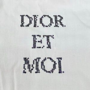This Dior white button-down shirt, crafted from cotton and polyester, offers a sophisticated look. The "Dior Et Moi" embroidery adds a distinctive touch, making it suitable for formal or business settings. Its classic collar and button closure ensure a timeless style, making it a versatile wardrobe staple.