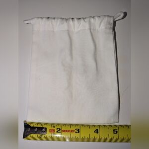 Dior small white drawstring pouch. No stains, snags, or marks. The shadow on the side near the bottom is the interior label. 5" x 6".