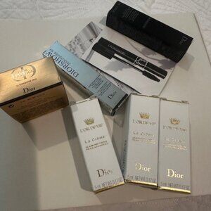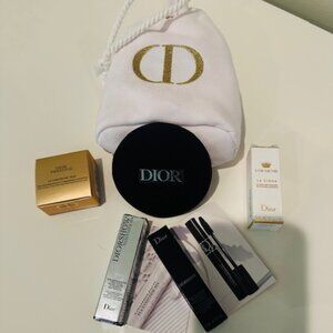 Dior White Travel Cosmetic Drawstring Bag with eye and lip bundle