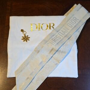 Chic Dior ribbon in white and gold. Features a stylish charm.