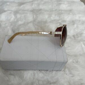 Barely worn Dior Women's Gold Aviator Sunglasses. Sides have Mother of Pearl detailing. No scratches. White box has some wear.
