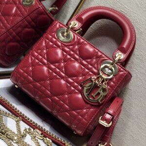 product, Dior Lady handbag. It can be carried by hand, worn on the shoulder, or carried diagonally. genuine,Dimensions: 17 X 15 X 7cm. Removable shoulder strap, internal zipper pocket.